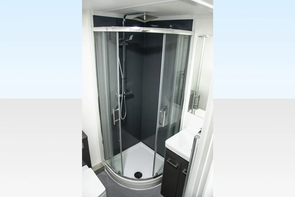 La unidad dormitorio está equipada con equipos de ahorro de energía, incluida la tecnología de detección de carga Ecosmart para administrar las demandas de energía y luces LED para reducir el consumo de energía. Las conexiones de servicios públicos incluyen salida de desagüe estándar de 110 mm, entrada de agua de la ciudad a través de una manguera de 15 mm y conexión eléctrica de 32 amperios.