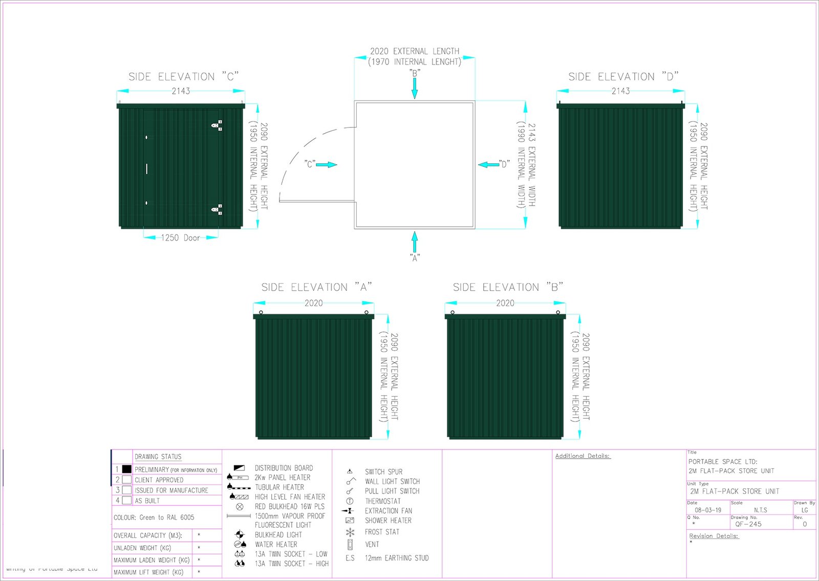 Dimensiones interiores: L.5.90m x W.2.35m x H.2.40m